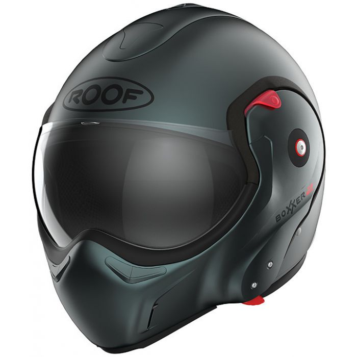 The chin bar can be rotated all the way to the back of the helmet, and it has been improved quite a bit since the Boxer V8. The Boxxer Carbon has a new locking mechanism, which automatically closes. The helmet has been dual homologated (P/J) which means you can legally use the helmet as a full face helmet and as an open face helmet.