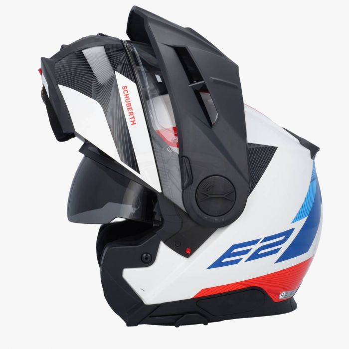 Introducing the Schuberth E2 motorcycle helmet – an iconic adventure and off-road helmet made for the most demanding motorcyclists! This incredibly lightweight composite helmet (weighing in at just 1,850 grams) is designed with an SCHUBERTH Direct Fibre Processing shell that comes in two sizes and a dual-density EPS for optimum comfort